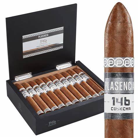 PLASENCIA COSECHA 146 SN. AGUSTIN TOR 6 1/4X52 (10)” refers to a package containing 10 cigars from the PLASENCIA COSECHA 146 line, with each cigar measuring approximately 6 1/4 inches in length with a ring gauge of 52 and belonging to the SN. AGUSTIN TOR style or blend.